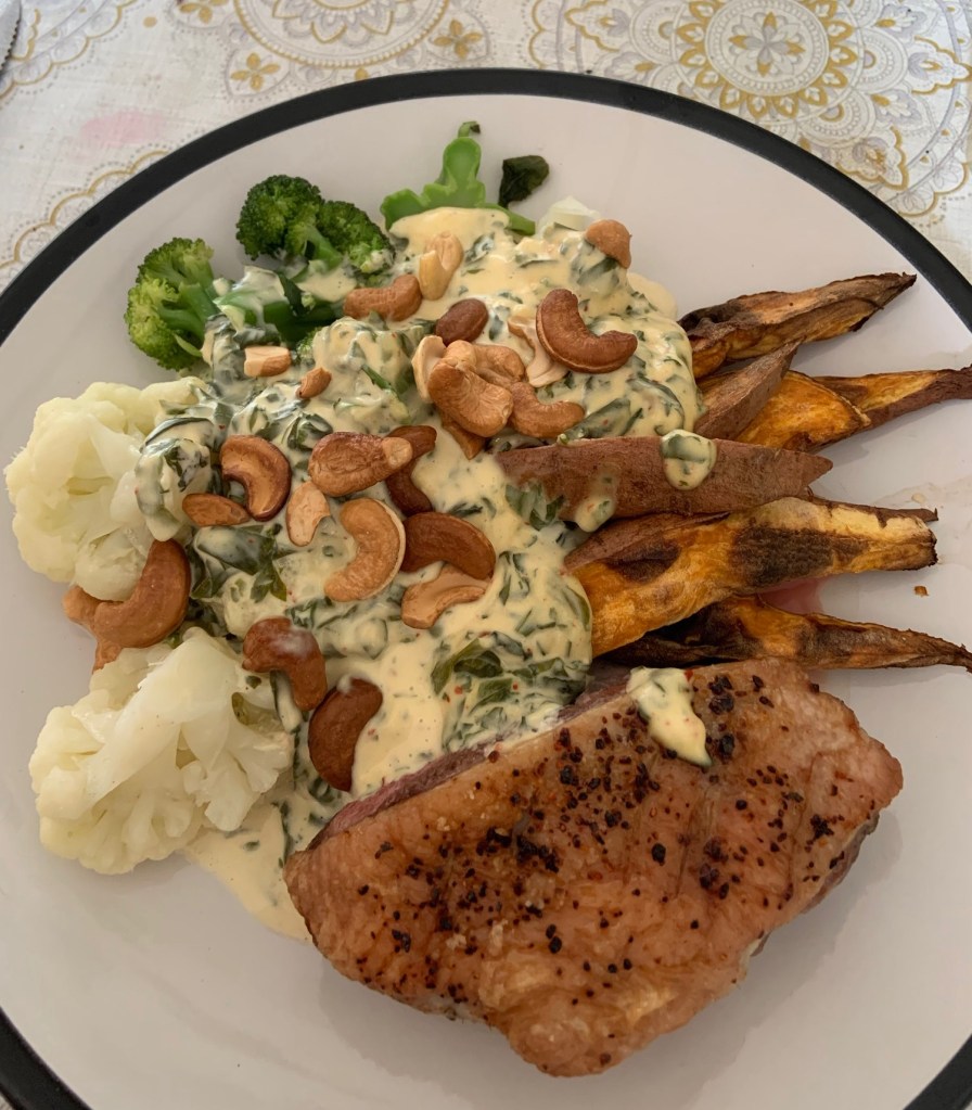 The ketogenic diet I’m on seriously rocks! It’s very rich, lots of meat and fat, which I have to say I’m really enjoying, I love butter, and cream sauces! I’ve discovered the joys of an air fryer, which has revolutionised dinner time, I’ve been tucking into free range beef, chicken and duck, with lots of cauliflower and broccoli, which are great cancer fighting vegetables, covered in butter and cream sauce. So easy to make and absolutely delicious! I sprinkle toasted sesame seeds and cashews over the top, it’s really indulgent. I’m loving dinner time! So instead of my body burning carbs for energy, as I’m not eating any carbs at all, I’m burning fat instead. I’m also juicing green vegetables. I eat between 12-6pm and then fast for 18 hours.
